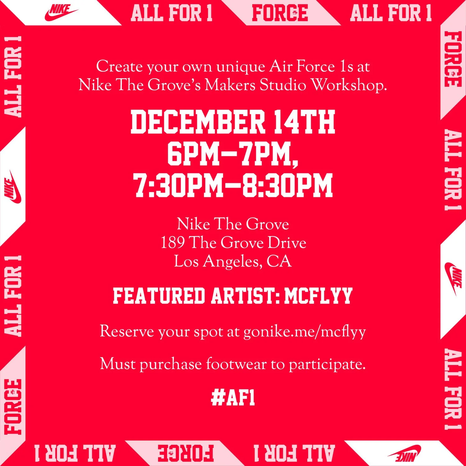 Nike presents Makers Studio Workshop at The Grove in Los Angeles, CA featuring McFlyy as the master instructor for the event. Attendees have over an hour to interact and learn from McFlyy while utilizing all the tools and equipment that he uses on similar commission work.